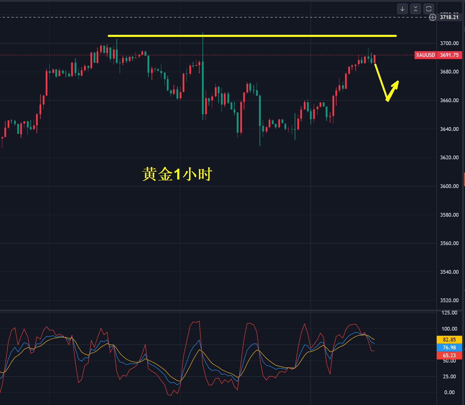 1 hour, the focus is on the gains and losses of US$3,700, and the extension within the day after the rebound is stagedThe continuity is worth thinking about, that is, whether the previous high of 3706 can be broken down again, and a large number of short-term profit-taking orders will choose to leave the market at any time due to the influence of news. 3864 is the year-end goal, not a short-term goal.
