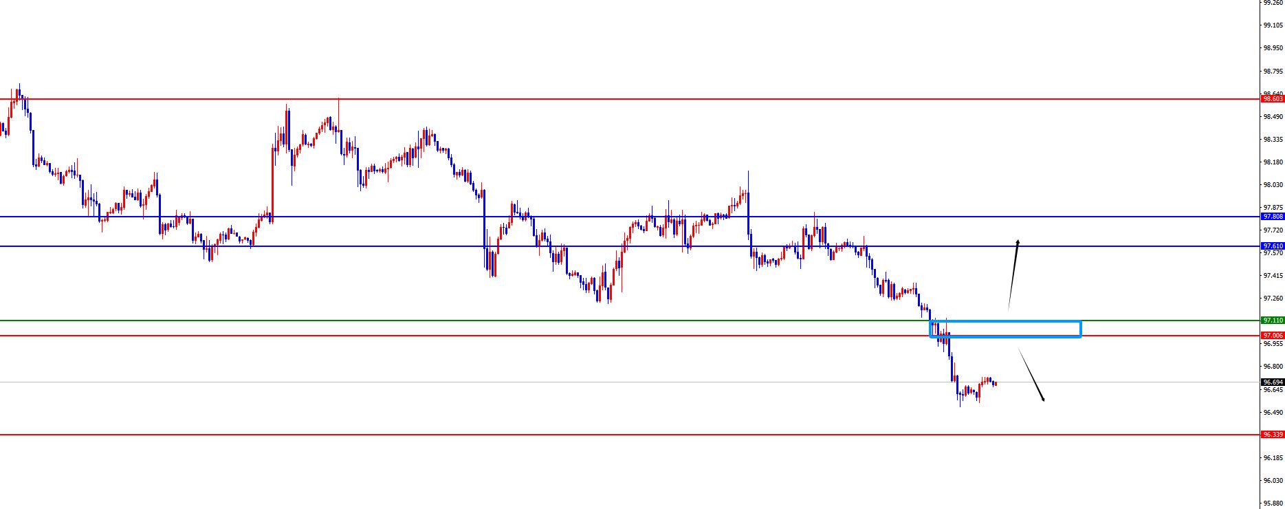 A partir de un análisis de múltiples ciclos, el precio se ha estado consolidando recientemente en el nivel semanal. Actualmente, la resistencia semanal se encuentra en el área de 97.80, y el precio tiene un hombro corto por debajo de esta posición. El precio solo girará mucho después del cierre semanal posterior por encima de esta posición. Desde el nivel diario, a medida que pasa el tiempo, la resistencia diaria se encuentra actualmente en el área 97.60. Soy corto en esta posición. Para el futuro, debemos prestar atención a si el precio puede estabilizar el rango de resistencia de resonancia diaria y semanal. Solo por estar firme se elevará, de lo contrario continuará bajo presión. Desde la perspectiva de cuatro horas, después de la reciente fluctuación y presión del índice de dólar estadounidense, la resistencia actual de cuatro horas está en el rango de 97.00-10, y actualmente está cerca del punto bajo reciente, por lo que debemos ser cautelosos, centrándonos en las ganancias y pérdidas de la resistencia de cuatro horas. Una vez que se rompe, debemos tener cuidado de girar hacia arriba. La resistencia actual de cuatro horas es una posición de cuenca a corto plazo. Observe más y muévase menos durante el día y espere orientación después de los datos.