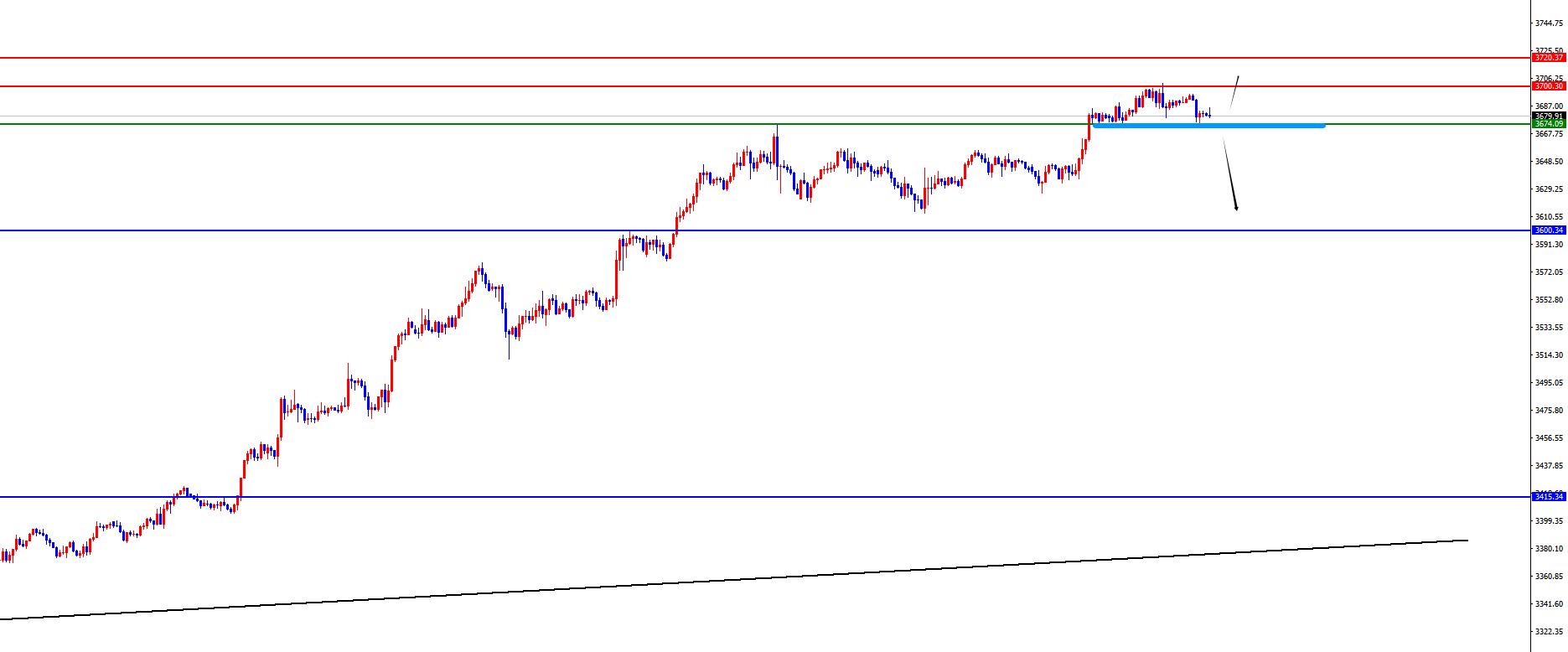 A partir de un análisis de ciclo múltiple, primero observe el ritmo mensual. El precio mensual terminó en agosto. En general, el precio sigue funcionando alcista. Desde la perspectiva a largo plazo, la posición 3000 es la cuenca de la tendencia a largo plazo. El precio se puede tratar más a largo plazo. Desde el nivel semanal, el precio ha roto la resistencia clave después de las recientes fluctuaciones continuas y ha seguido alcanzando un nuevo máximo histórico. Actualmente, la cuenca semanal larga y corta está en 3415. El precio está por encima de esta posición y la línea media se trata más. Desde el nivel diario, debemos prestar atención al apoyo regional 3600 por el momento, y la banda por encima de esta posición debe tratarse con más frecuencia. Desde la perspectiva de cuatro horas, el precio continuó aumentando después de romper la resistencia de cuatro horas el lunes. A medida que pasa el tiempo, actualmente admite la posición 3674 durante cuatro horas. Esta posición es una cuenca clave a corto plazo. Una vez que el precio se rompe, debe prestar atención a los ajustes. En el frente de una hora, el mercado estadounidense aumentó y retrocedió, y la sesión asiática estaba bajo presión nuevamente durante la sesión asiática de hoy. La disminución de una hora aún no ha terminado, por lo que el enfoque está en las ganancias y pérdidas de la posición 3674 en el futuro. Además, la resolución de tasas de interés de la Reserva Federal se llevará a cabo en la madrugada de la noche, por lo que los toros deben ser cautelosos en la actualidad, centrándose en las ganancias y pérdidas de la sesión europea y la posición 3674. Una vez que se rompe el precio, debe prestar atención al ajuste del mercado.