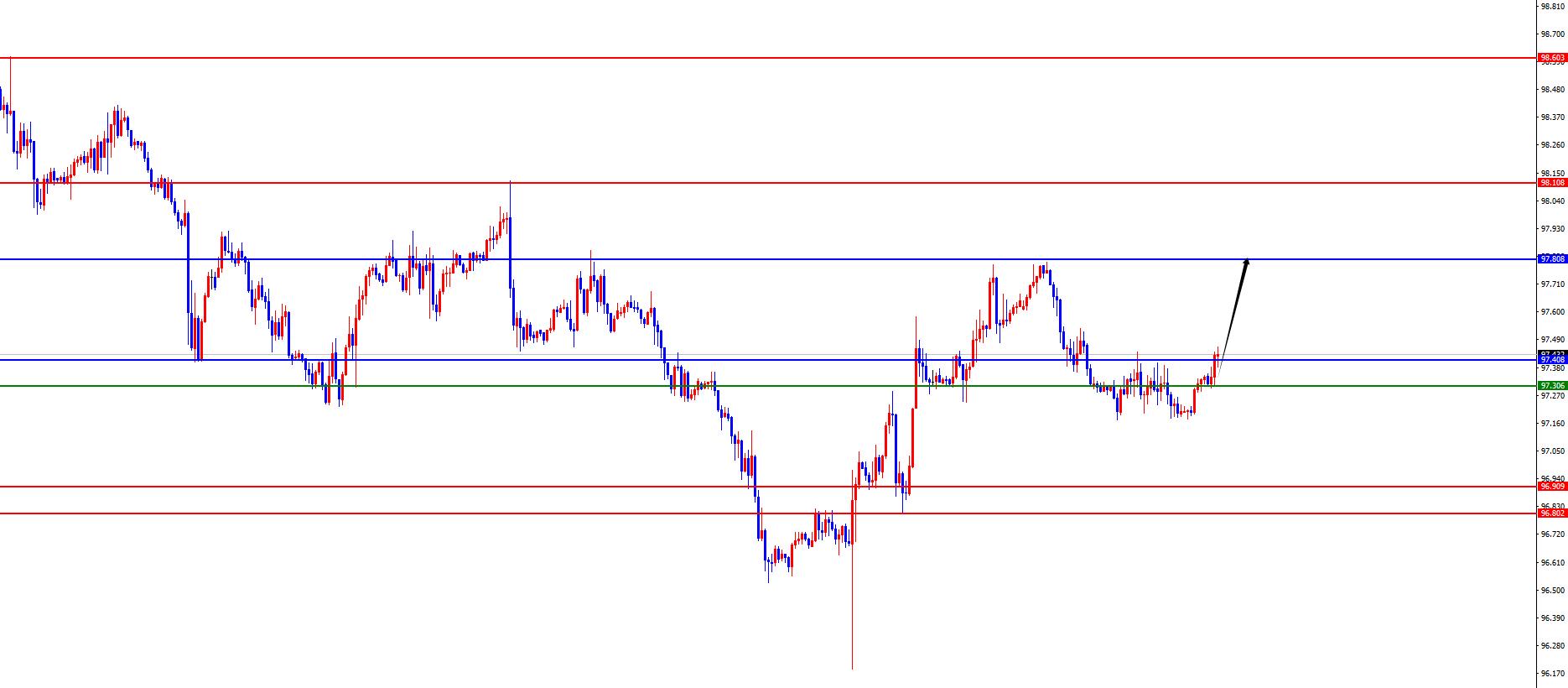 The US dollar index has a long range of 97.30-40, with a defense of 5 US dollars, and a target of 97.60-97.80