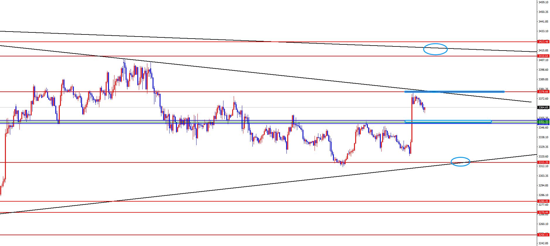 Emas umumnya prihatin mengenai jarak 3315-3410, dan fokus jangka pendek adalah pada jarak 3315-3410 Negara -negara