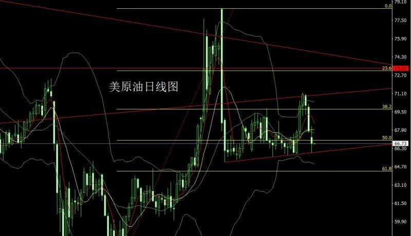 美原油市场昨日低开在67.27的位置后行情先拉升回补缺口给出68.24的位置后行情强势震荡回落,日线最低给到了本轮趋势线制衡65.95的位置后行情整理,日线最终收线在了66.72的位置后,日线以一根上影线稍长于下影线的中阴线收线,而这样的形态收尾后,今日66.1尝试多止损65.6,目标看67和67.6和68.