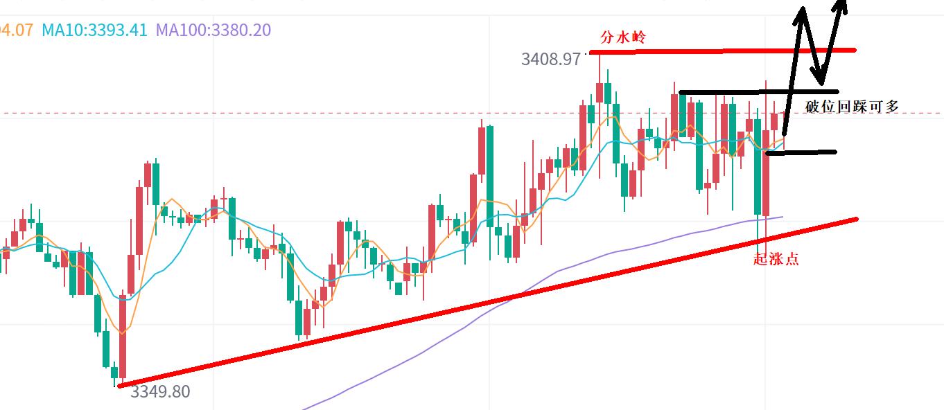 3,要是直接破3408前一日高点,午后还是多,就需要关注3400关口一线转支撑。