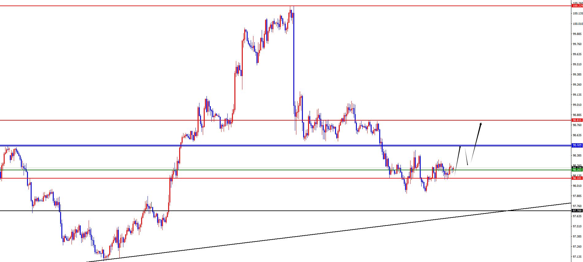 美指98.10-20区间多,防守5美金,目标98.50-98.80
