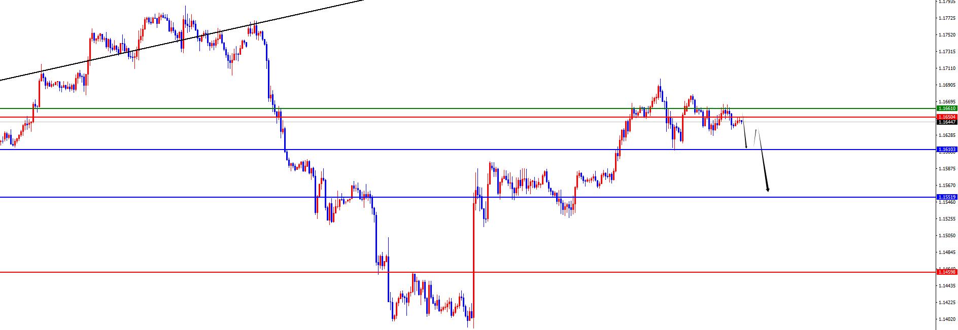 欧美1.1650-60区间空,防守50点,目标1.1610-1.1550