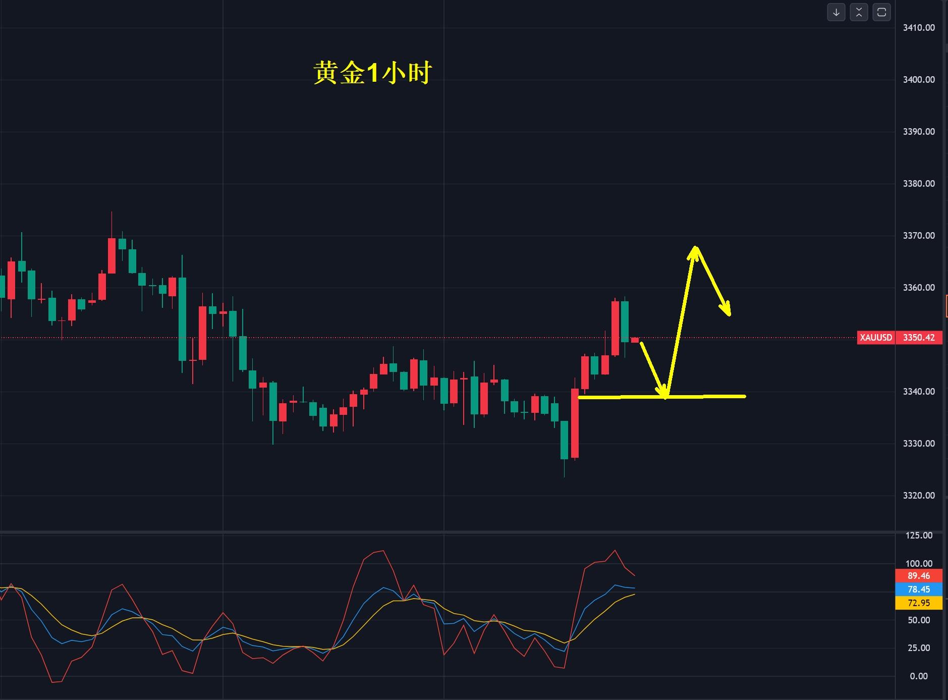 所以,今天黄金回落后向上反弹,欧美盘重点关注3340-35美元的区域入场多,向上目标3365-3370,震荡行情并非强势单边,不必急于追多,永远别把没抓住的行情当成一种损失,只做自己认知范围内的交易。提示:重仓,锁仓,不止损者勿借鉴!一家之言!