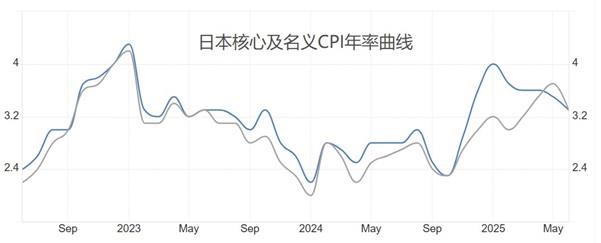 本周五7:30,日本总务省统计局将公布日本7月核心CPI年率,前值为3.3%,预期值3%,预期降幅较大。日本央行设定的温和通胀标准为2~3%,即便7月份数据下降,依旧处于目标通胀水平上方。另外,历史数据看,日本的核心及名义CPI年率曲线处于中期上升趋势,个别月份的数据下降不会改变市场对日本通胀持续升温的预期。对于日本央行来说,持续加息是一种长期选择。只要核心CPI年率没有出现连续大幅度下降,加息预期将一直存在,利多日元币值。
