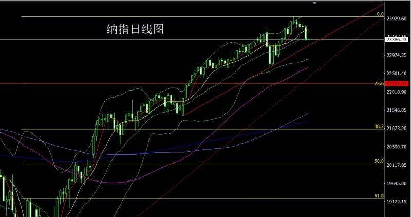 纳指市场昨日开盘在23709.75的位置后行情先拉升给出23752.95的位置后行情强势震荡回落,日线最低给到了23340.88的位置后行情整理,日线最终收线在了23385.74的位置后,日线以一根略大影线的大阴线收线,而这样的形态收尾后,今日的行情依旧有回落压力,点位上,上周五23860的空减仓后止损跟进在23800,今日23550空止损23620下方目标看23340,跌破看23280和23200.