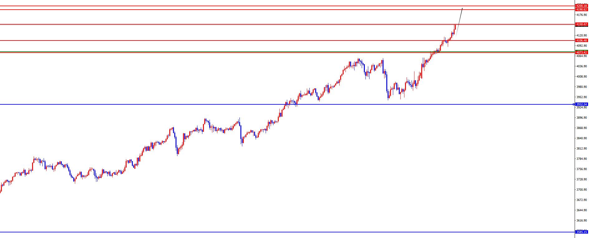从多周期分析,首先观察月线节奏,从长线上看3130位置是长线走势的分水岭,价格在此位置之上长线多对待即可。从周线级别看,目前周线多空分水岭于3585位置,价格在此位置之上中线多对待即可。从日线级别看,暂时需要关注3932区域支撑,此位置之上波段多对待。从四小时上看,针对昨日早盘期间下探的低点位置就是四小时关键支撑,价格回踩后维持强势上升,目前四小时支撑于4073-4075区域,价格在此位置维持多对待即可。一小时上,一小时继续强调极强概念,同时近期强势上涨时间点均在亚盘,所以亚盘期间机会一定要把握,发否则的话在日内操作的话防守不好设置,或者是在15分钟小幅调整后入场。