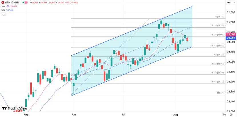 25.000 se transformam em uma resistência importante, o Índice Hang Seng interrompe quatro aumentos consecutivos e está sob pressão durante a consolidação