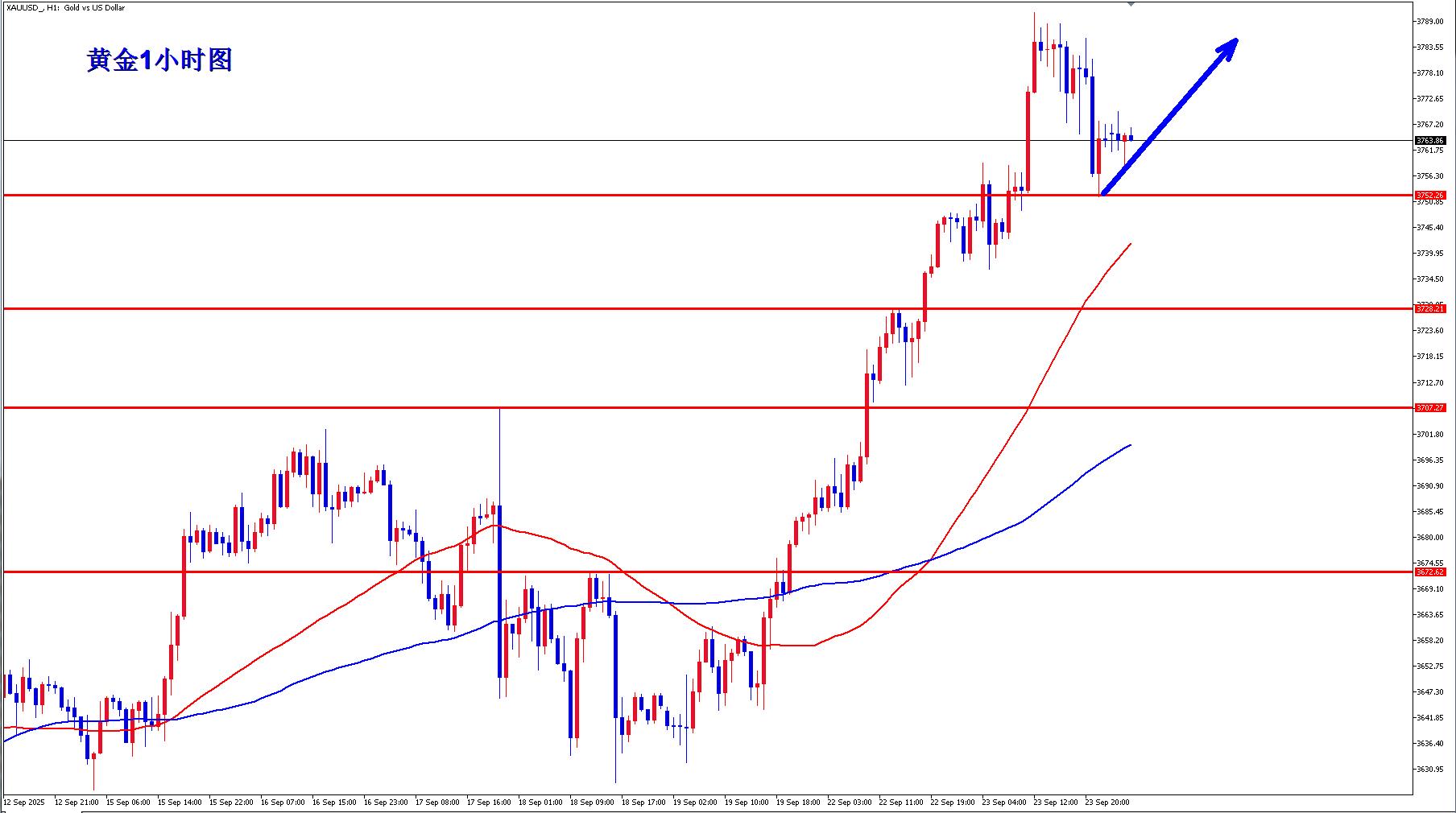 The gold 1-hour moving average continues to continue to move upward long lines, and gold still has long momentum. After gold bottomed out last night, it may have ended its short-term adjustment. Gold's low of 3752 last night is an opportunity to continue to be low. Gold will continue to rise if it falls slightly in the morning, and gold bulls may start to continue to exert force at any time.