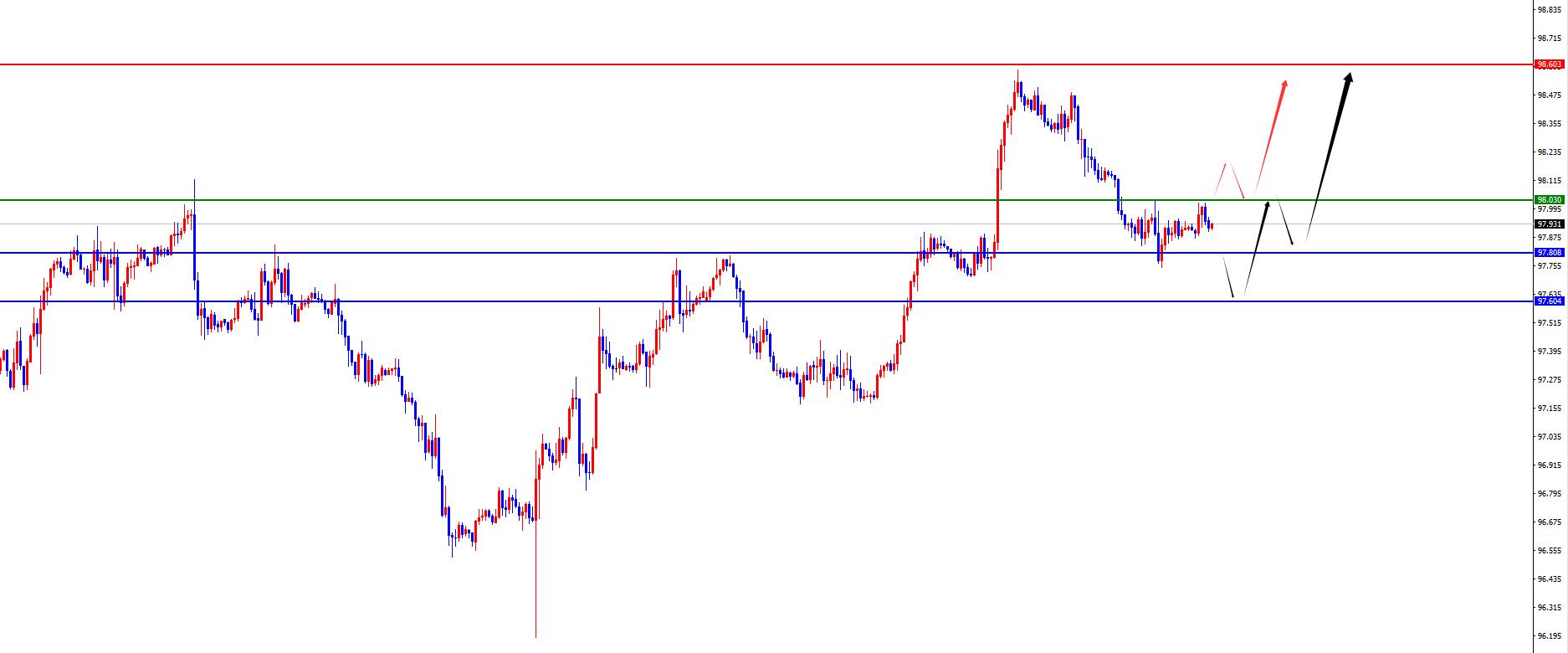 El índice del dólar estadounidense tiene un largo rango de 97.60-70, con una defensa de 5 dólares estadounidenses y un objetivo de 98.20-98.50