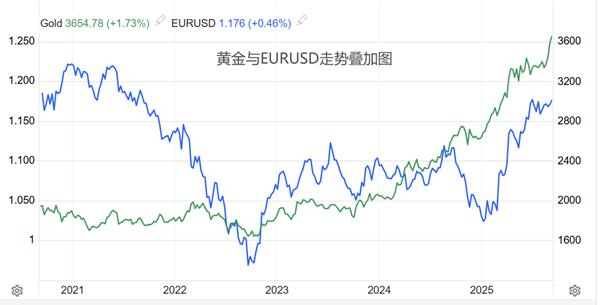 De 30 de julho até o presente, o ouro de Londres subiu do ponto mais baixo de US $ 3.267 para o ponto mais alto de US $ 3.659, xmspot.com um aumento cumulativo de cerca de 12%; Durante o mesmo período, a EURUSD subiu do ponto mais baixo de 1,1390 para o ponto mais alto de 1,1779, um intervalo de 389 pontos, um intervalo de 3,4%, cerca de um quarto do aumento do ouro. Além do aumento, os dois também são diferentes no processo de aumento. A ascensão do ouro está se espalhando xmspot.com linhas K positivas contínuas, enquanto a ascensão do euro está cheia de reviravoltas, geralmente xmspot.com uma linha positiva que aparece após uma linha positiva. Também se beneficiava da expectativa de cortes na taxa de juros do Fed, os ganhos do euro ficam muito atrás do ouro. Qual é o motivo?